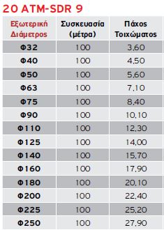Σωλήνας Πολυαιθυλενίου Ύδρευσης 20 ATM-SDR 9 HD PE 3ης Γενιάς CΕΝ 12201
